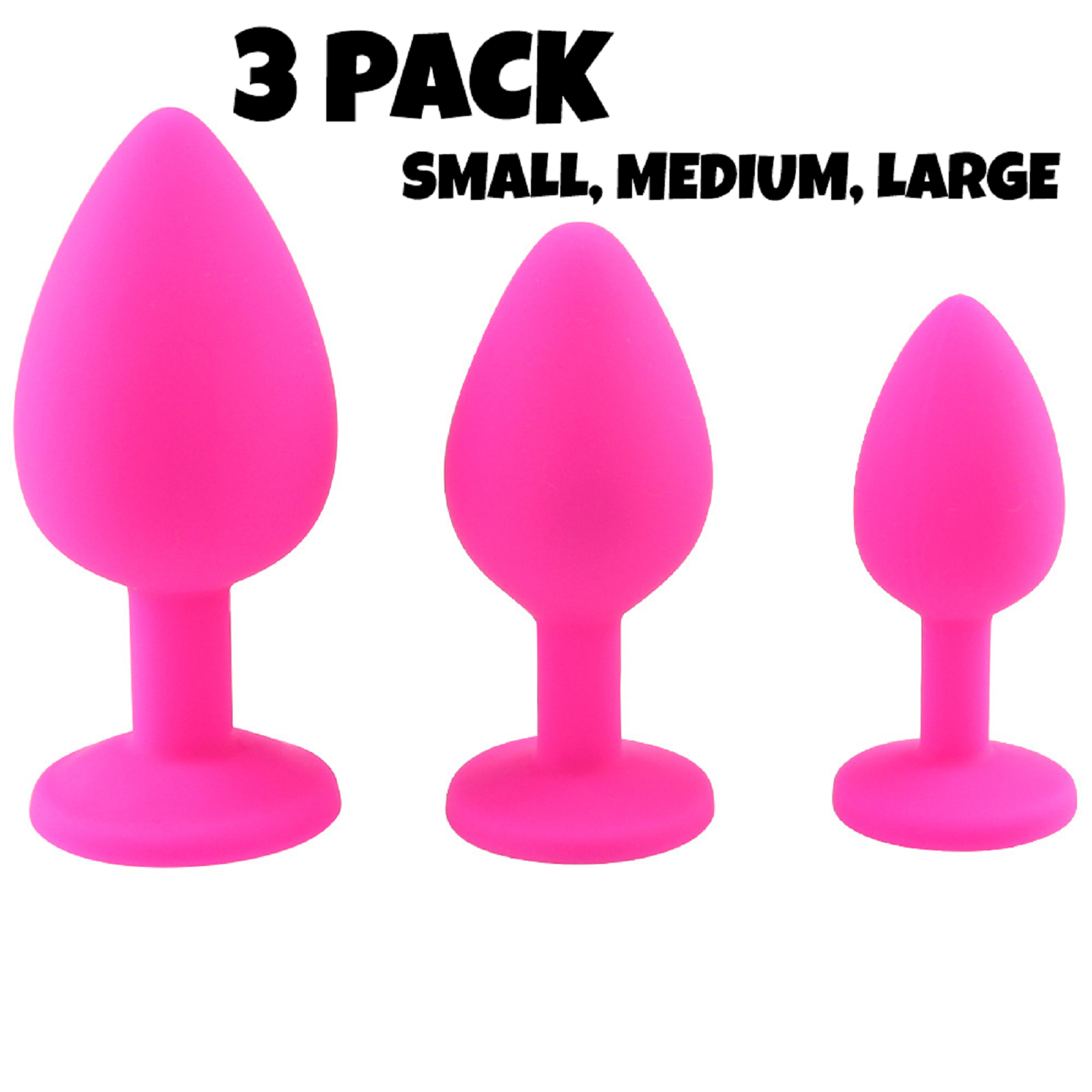 3 Pack Anal Butt Plug Crystal Jewel Gem Silicone Dildo Mens Beads BDSM Sex Toy