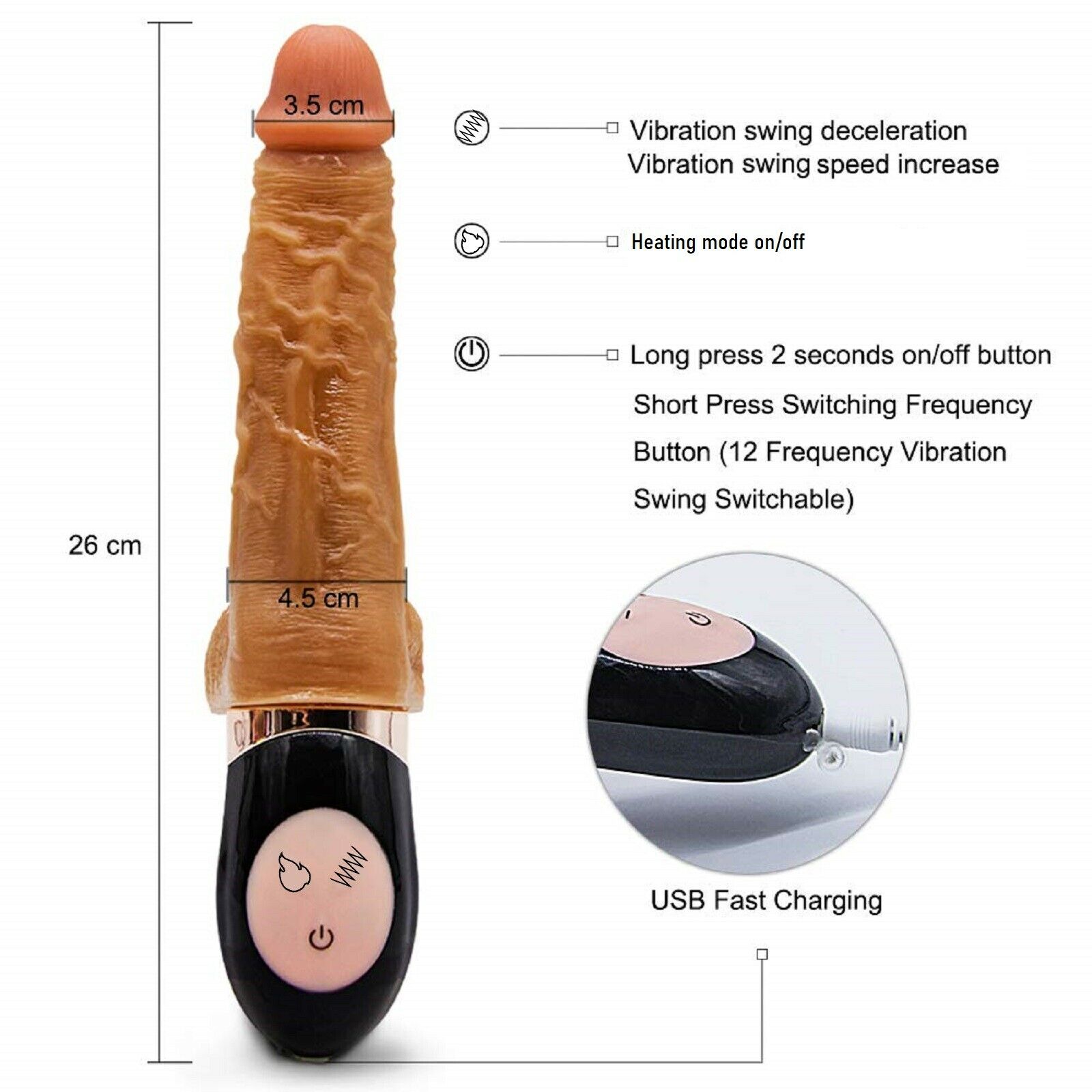 Realistic lifelike shape with defined head and firm, veined shaft.