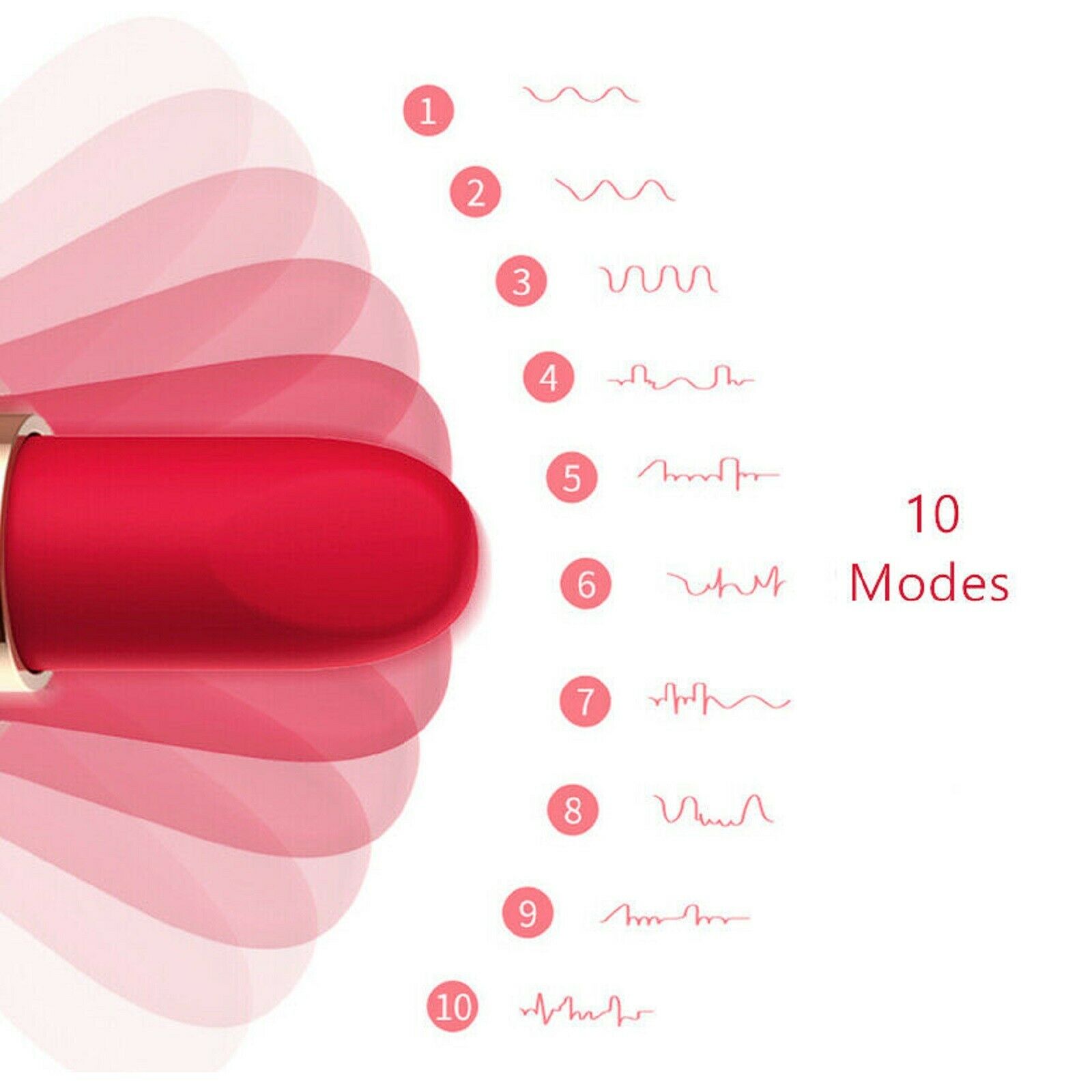 Single-button interface operates 10 powerful vibration functions.