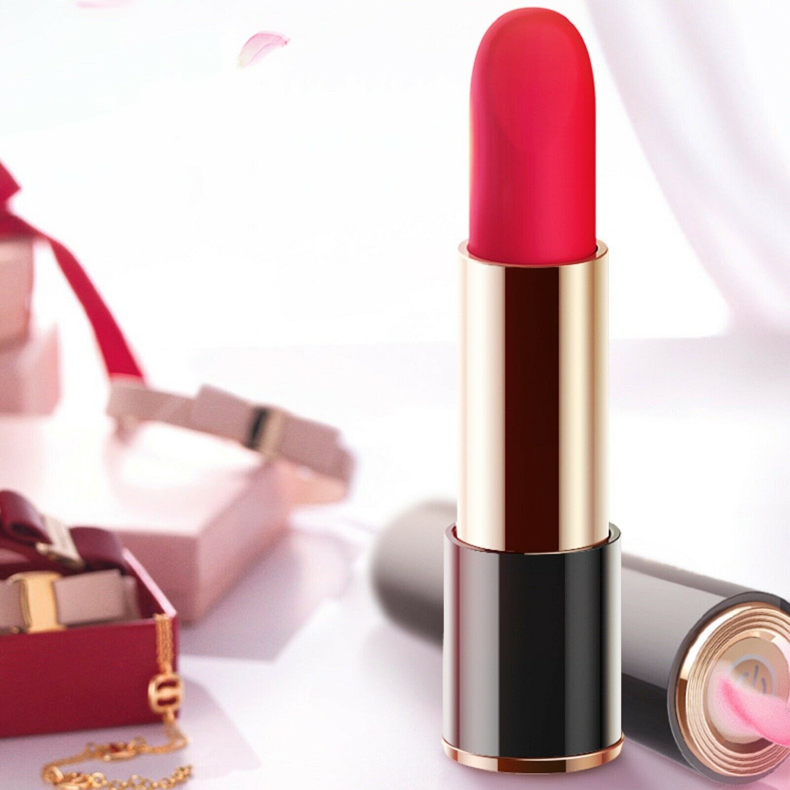 Ultra-discreet lipstick vibrator for secret clitoral and external stimulation.